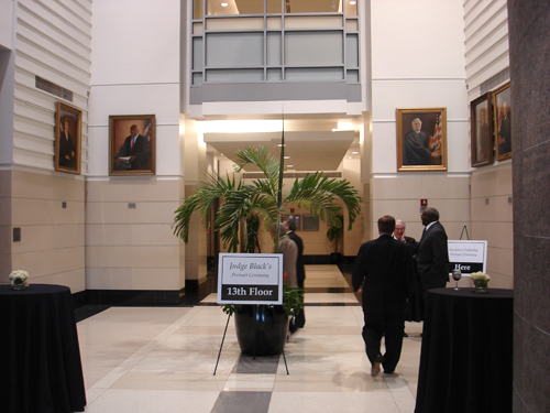 Artist, Harold Davis attends the unveiling ceremony for his recent commission held at the Bryan Simpson United States Courthouse, in Jacksonville, Florida.